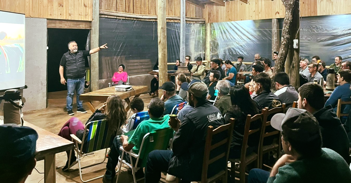 As palestras foram conduzidas pelo médico veterinário Adriano Echeverne, diretor da Curantur, que abordou o tema “Pecuária do Futuro”, e pela engenheira agrônoma Mariani Giacomin, especialista em adubação racional de culturas e sócia-proprietária da Raez Agro, apresentou a palestra “Manejo Biológico”.