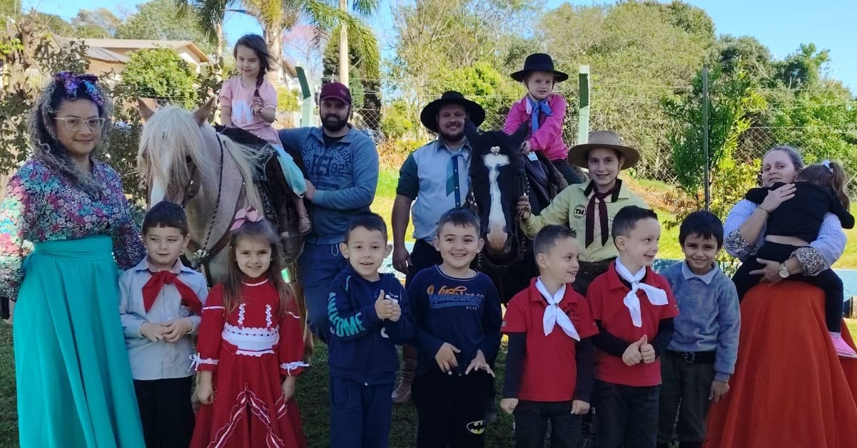 Já na EMEI Dr. Orlando Rojas, a Semana Farroupilha foi marcada por uma intensa vivência cultural durante toda a semana. Teve café de chaleira, passeio a cavalo, churrasco, fandango, mateada e, como destaque, a apresentação da Invernada Artística do CTG Unidos pela Tradição, realizada no Salão Católico na sexta-feira (19/09).