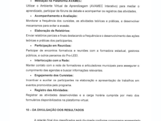 É fundamental que as/os formadoras/es municipais selecionadas/os tenham ciência de suas funções e competências durante a participação no ProLEEI/RS 2025/2026, quais sejam: