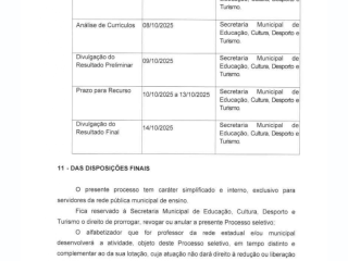 Divulgação do Resultado Final: 14/10/2025 (Secretaria Municipal de Educação, Cultura, Desporto e Turismo).