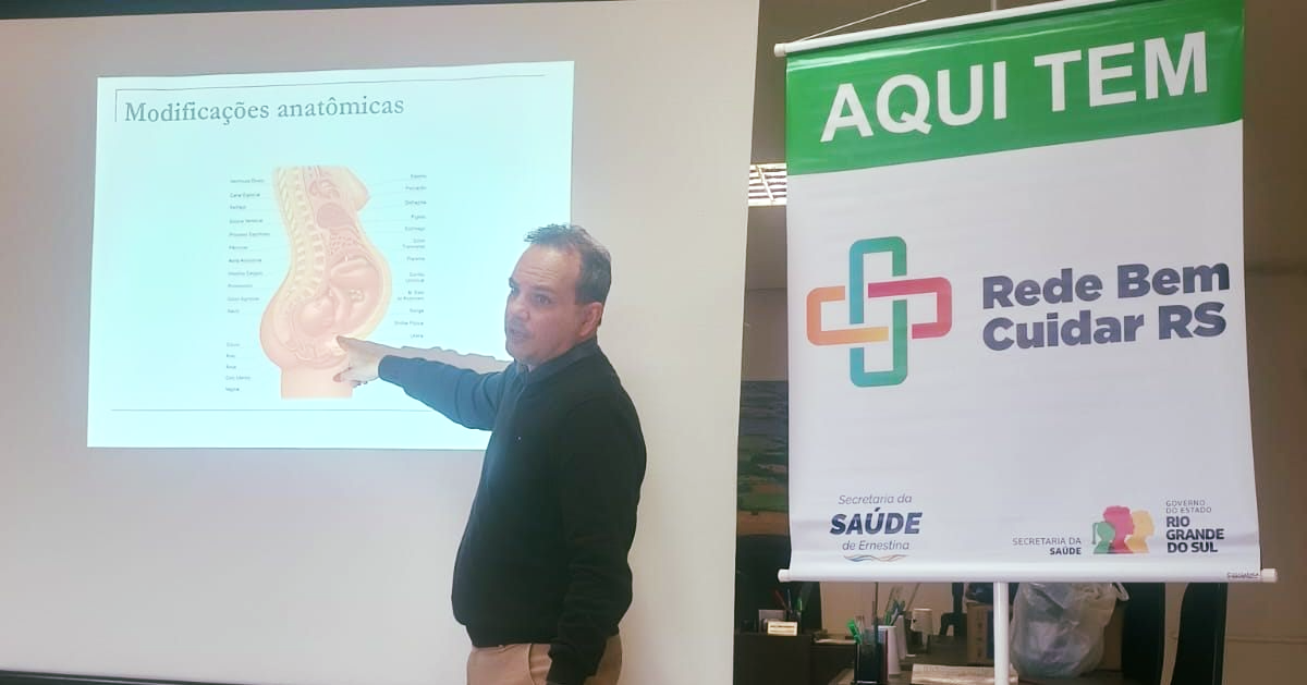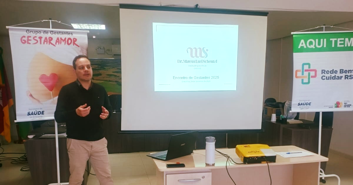 A atividade contou com a presença do Dr. Mateus, ginecologista da UBS de Ernestina, que conduziu uma conversa sobre os cuidados durante a gestação, como as mudanças físicas e emocionais que ocorrem no corpo da mulher ao longo da gravidez, além de orientações sobre saúde, bem-estar e preparo para a chegada do bebê.