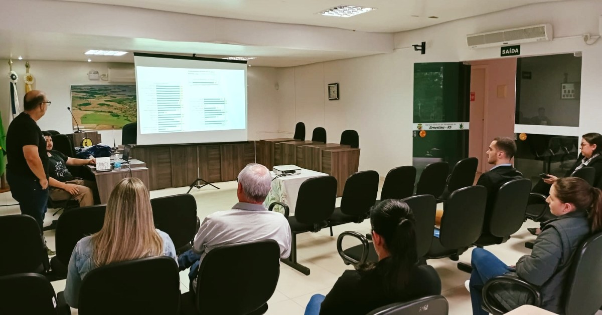 A Emater/RS-Ascar apresentou o Plano Operacional para 2026 e os resultados alcançados em 2025 durante encontro realizado na tarde da última quinta-feira (16/10), na Câmara de Vereadores de Ernestina. A reunião contou com a presença de representantes do Conselho Municipal da Agricultura, do vice-prefeito Leonir Vargas, da presidente do Legislativo, Silvane Vargas, do presidente do Sindicato dos Trabalhadores Rurais, Paulo Baumgratz, além de gerentes das instituições financeiras Banrisul, Cresol e Sicredi, e demais lideranças locais.