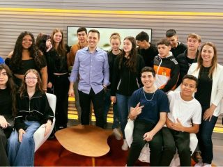 A manhã desta segunda-feira (17/11) foi de aprendizado e muita curiosidade para os estudantes da rede municipal de Ernestina, que realizaram uma visita à RBS TV Passo Fundo. A viagem foi um presente aos alunos que participaram das provas do SAERS neste ano, como forma de reconhecimento pelo empenho e dedicação. Os alunos conheceram os estúdios onde são produzidos o Jornal do Almoço e os conteúdos da Rádio Atlântida, ambos do Grupo RBS.