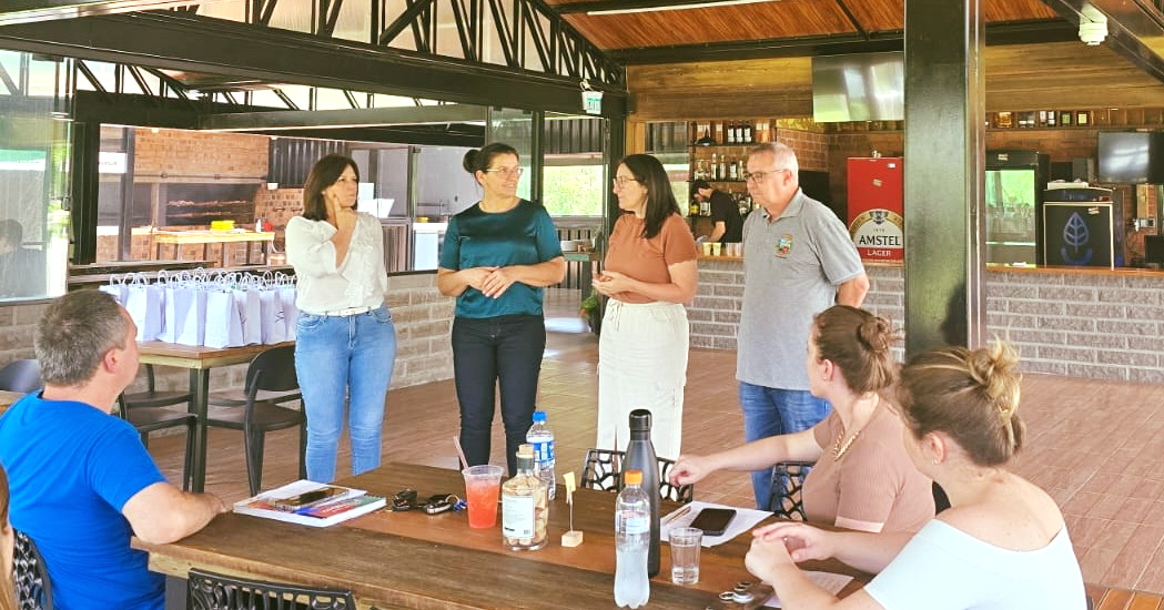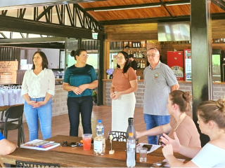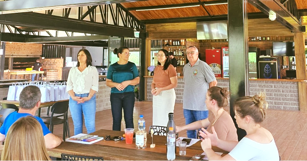 No encerramento dos trabalhos da Associação dos Municípios do Planalto (Ampla) em 2025, na manhã desta sexta-feira (28/11), o vice-prefeito de Ernestina, Leonir Vargas, a secretária de Educação, Marlei Petry, e a coordenadora pedagógica Leila Luersen estiveram em São Domingos do Sul cumprindo agenda regional da Ampla.