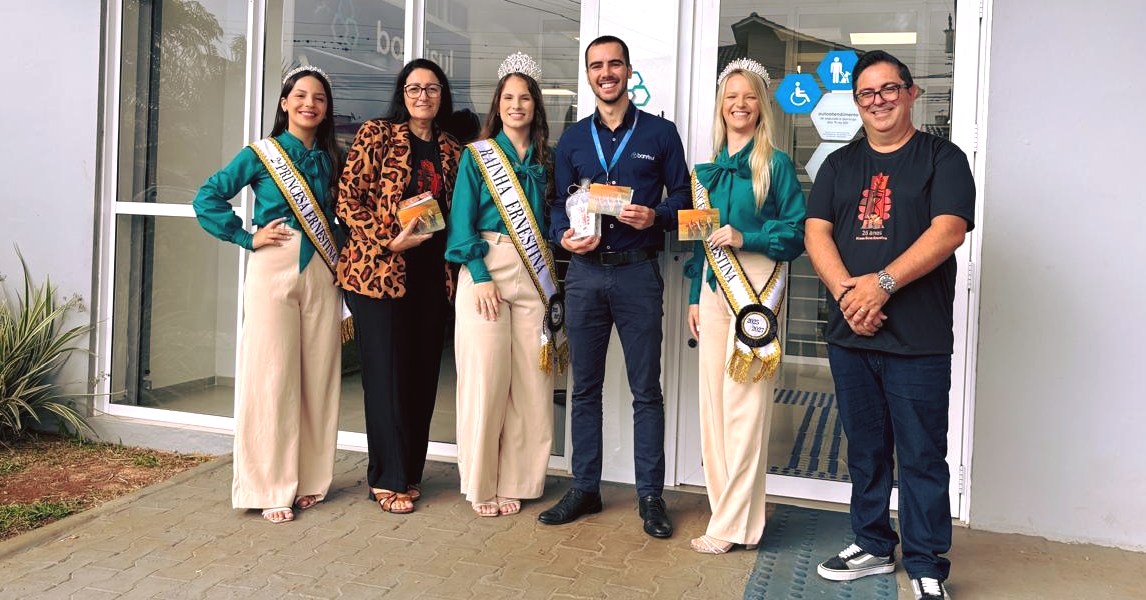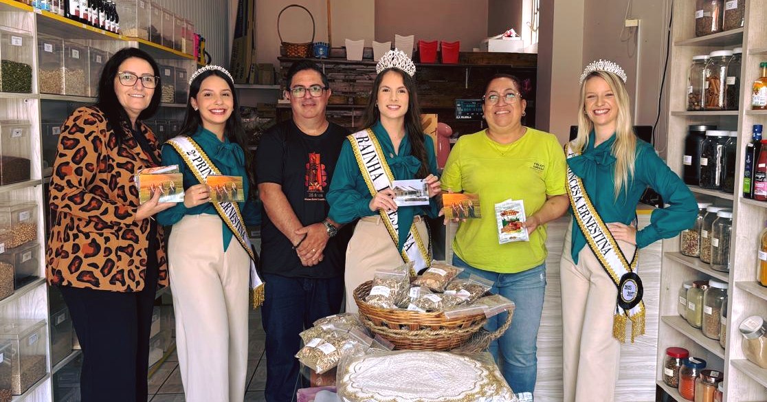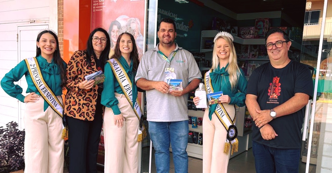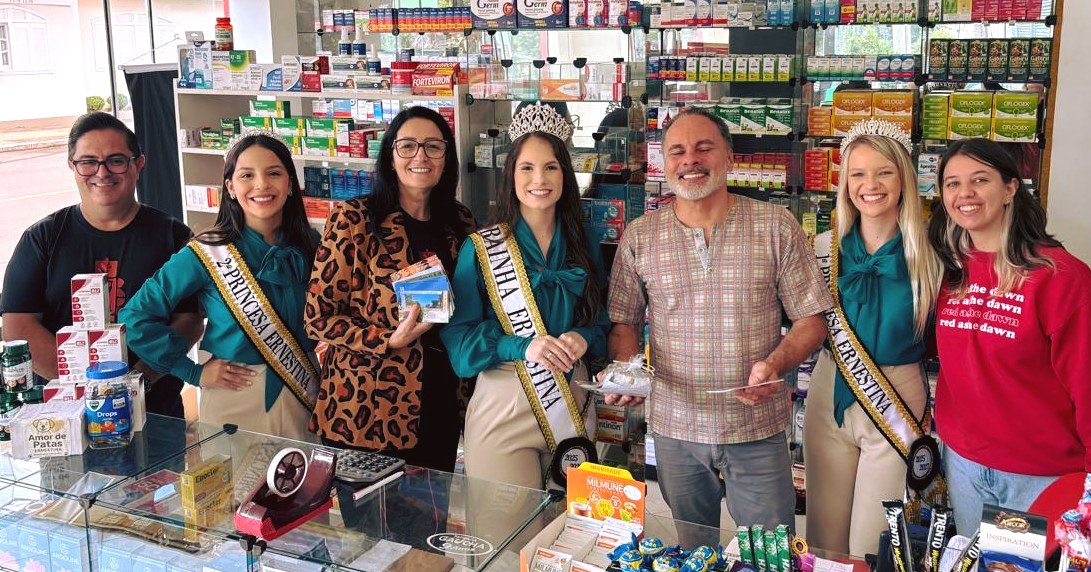 O comércio de Ernestina foi celebrado em uma ação especial nesta quinta-feira (09/04), dentro da programação da Semana do Município. Em uma ação promovida pelo Museu Municipal Dona Ernestina em parceria com a Secretaria de Educação, Cultura, Desporto e Turismo, a Corte de Soberanas, formada pela Rainha Júlia Schultz Schuh, 1ª Princesa Juliana Hortge Friedrich e 2ª Princesa Rayssa da Silveira Falcão, realizou visitas a estabelecimentos comerciais do município.