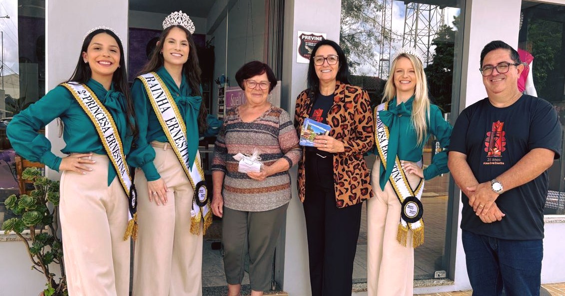 Nas visitas, as soberanas foram acompanhadas pela secretária de Educação, Marlei Petry, a coordenadora de Cultura e Turismo, Fabiana Corrêa da Silva, e o historiador do Museu Dona Ernestina, professor Alexandre Aguirre.