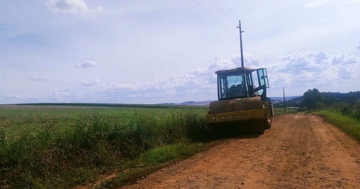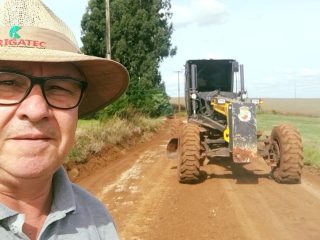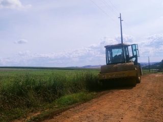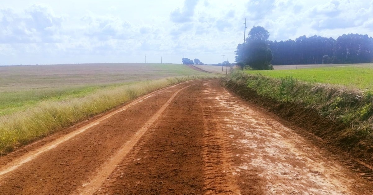 Além do alargamento, a estrada recebeu patrolamento e passagem do rolo compactador, proporcionando mais segurança, mobilidade e qualidade no deslocamento dos produtores rurais.